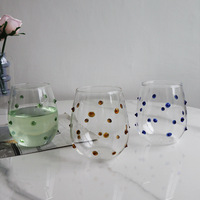 Creatieve Blauwe Onregelmatige Dot Glas Ontwerp Water Cup Met Touch Wave Dot Voor Melksap Of Drank Met Rijke Glazen Drinkwaren
