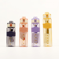 Zomer Nieuw Binnen Transparant Vierkant Drinkbeker Regenboog Buitenketel Plastic Waterfles Voor Mannen Vrouwen Drinken