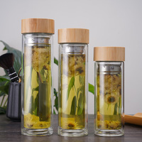 Botella de agua de vidrio de borosilicato con Infusor de fruta de limón caliente y frío con tapa de madera